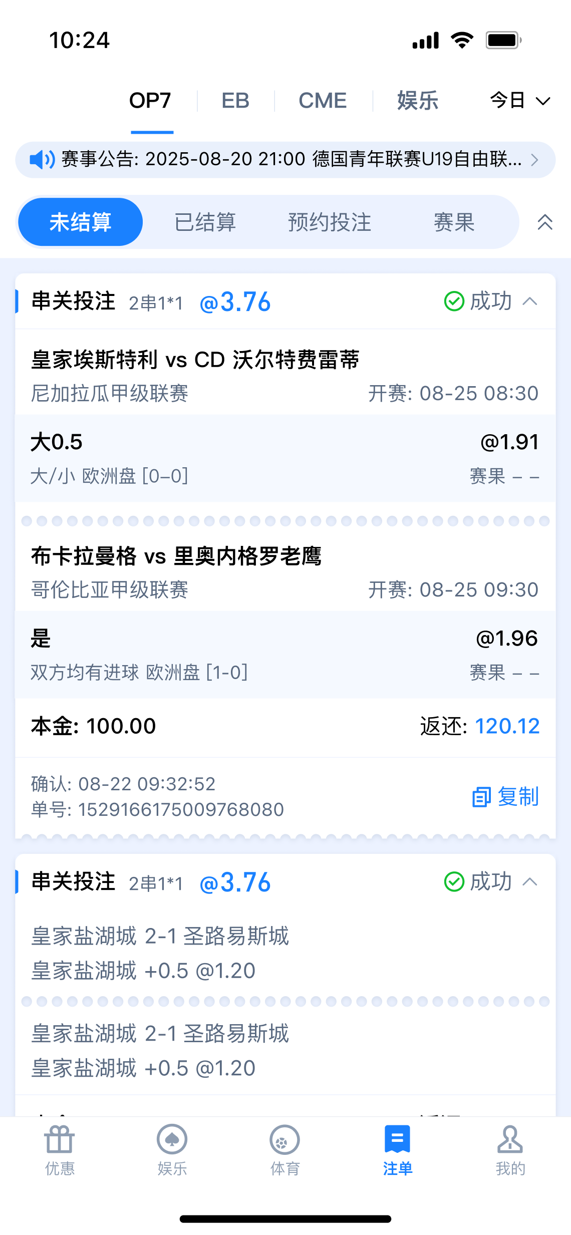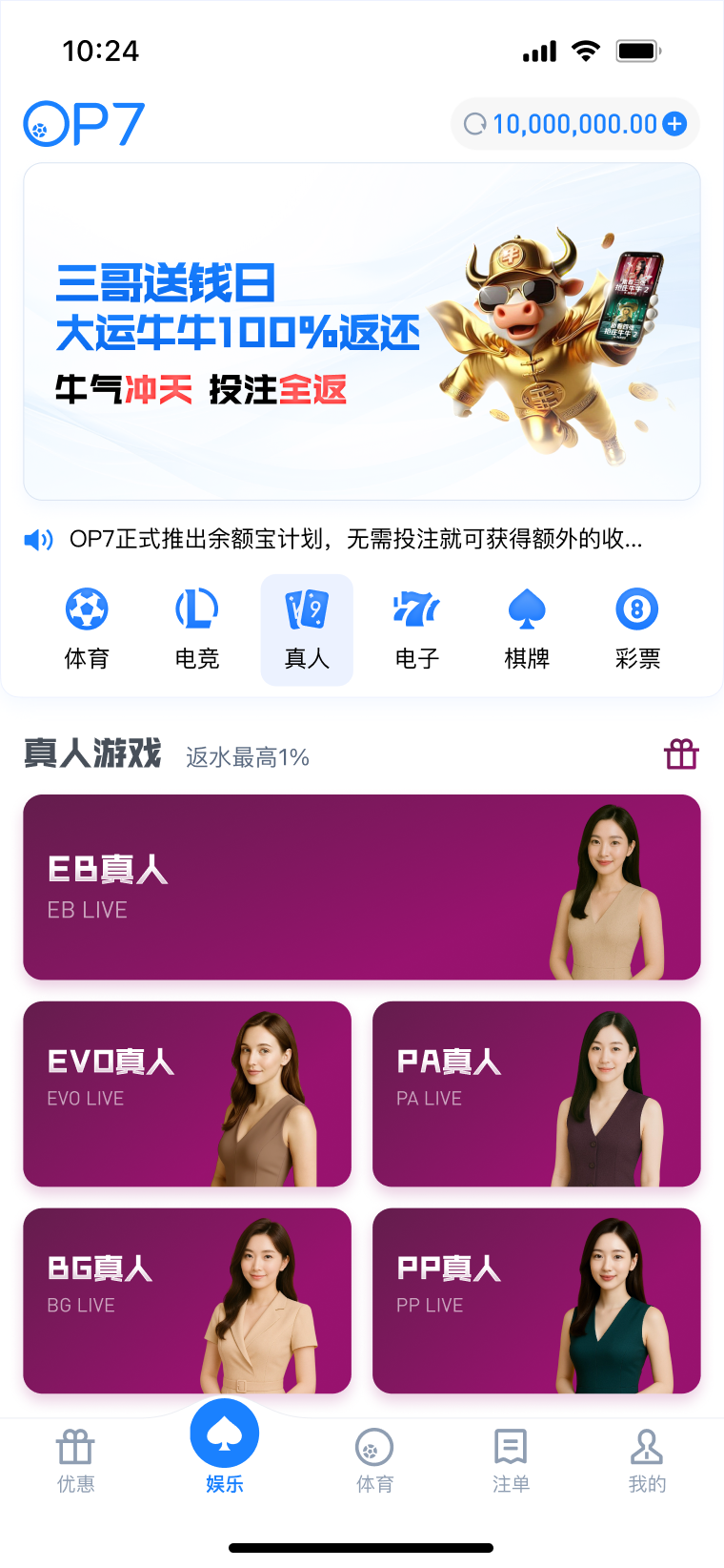公告: 1、巅峰预言家:洞见赛果,亮出你的剧本 3月12日 04:00 皇马vs曼城 2、冠军竞猜返利50% 最高1500元 3、OP7霸王餐包赔 投注多场指定赛事,享指定场馆总负盈利包赔!